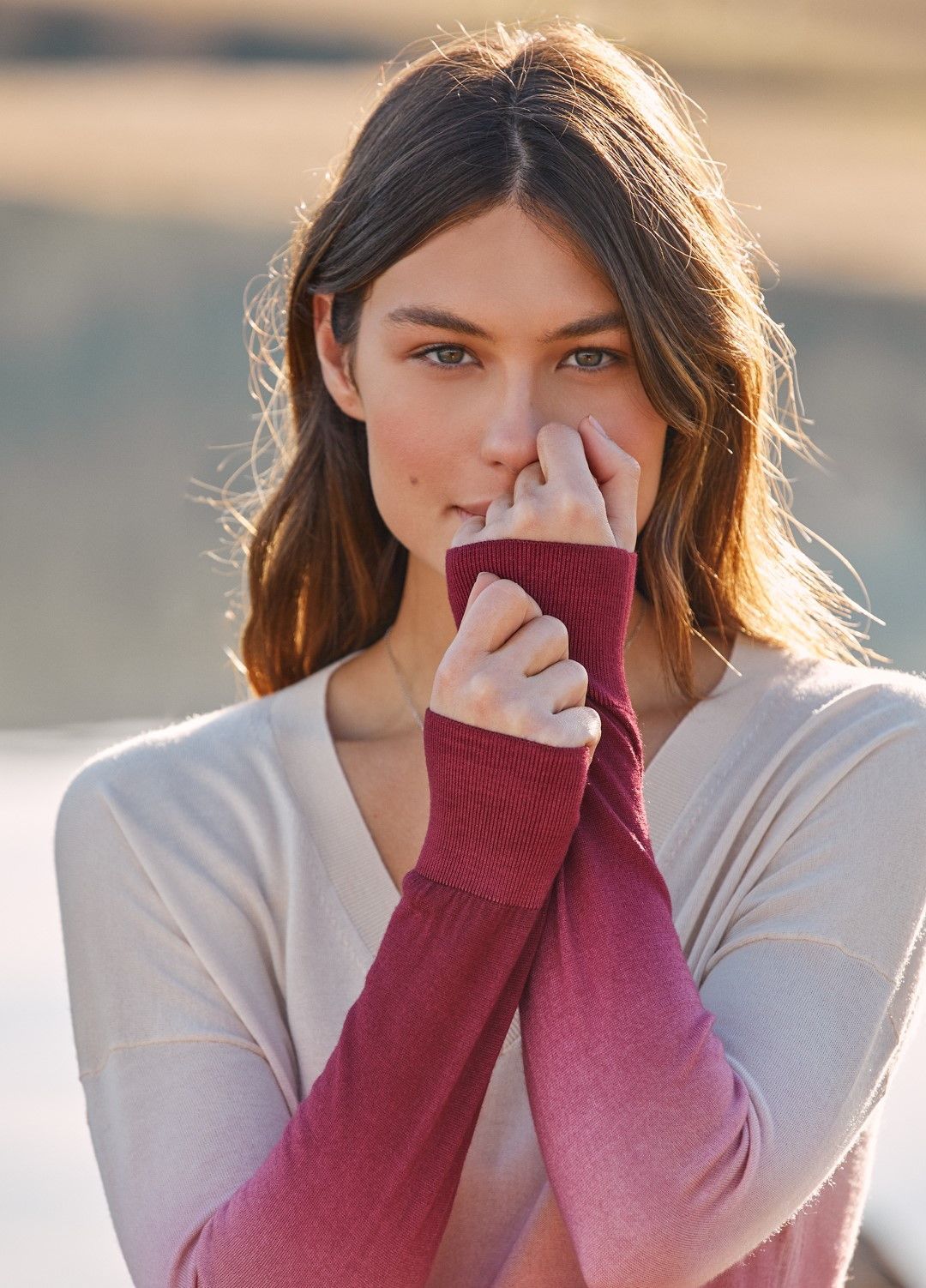 © Ufficio stampa|Falconeri primavera estate 2021 Degradè | Dalla base naturale prendono vita sfumature nelle nuove colorazioni del cashmere: mogano, sangria e laguna