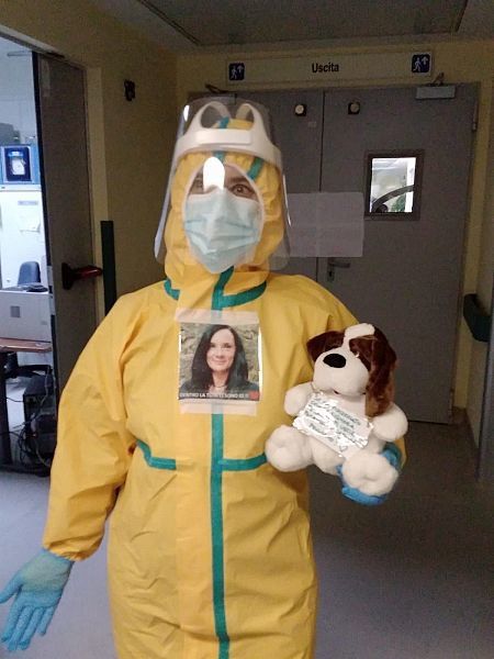 Superato l'impatto, Patrizia ha avuto un'idea. E' tornata a casa, ha preso una sua foto e si è creata da sola una specie di grande tesserino di riconoscimento. L'ha sistemato sul camice con una didascalia ben visibile: "dentro la tuta ci sono io". Ed è tornata al letto del marito. "La prima cosa che ha fatto - racconta - è stata quella di accarezzare la foto. Era ancora un po' incerto su chi ci fosse dietro la maschera e dentro la tuta, ma nessun dubbio su chi fosse la donna della foto: era sua moglie, ero io. Quando mi ha riconosciuta, siamo scoppiati a piangere: è stato veramente un ritrovarsi dopo un viaggio terribile che avevamo fatto in solitudine, uno lontano dall'altra".