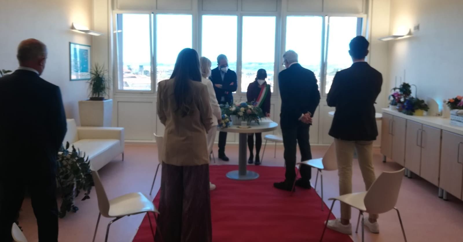 Una stanza, ampia e assolata, dell'area di Ematologia dell'ospedale San Bortolo di Vicenza ha ospitato il matrimonio di un degente dello stesso reparto, alle prese con una grave neoplasia, che si è unito in matrimonio con la compagna di una vita. Ad officiare il rito civile due rappresentati del sindaco del capoluogo berico, i due figli della coppia e due testimoni, la coordinatrice del reparto, la Giulia, per lui, e il direttore Marco Ruggeri per lei. Lo sposo portava un vestito grigio scuro, con sgargiante cravatta floreale, mentre la sposa un elegante tailleur bianco. Al termine della cerimonia, condotta nella stretta osservanza delle norme anti-Covid, si è festeggiato con un brindisi, offerto dalla Direzione medica, che ha curato assieme a Giulia l'organizzazione dell'evento. "Agli sposi va l'augurio di tutto il personale dell'Ematologia, in rappresentanza degli operatori del San Bortolo, con il sincero auspicio al paziente di vincere la battaglia, per tornare dalla moglie per una lunga vita assieme", si legge sulla pagina Facebook ULSS 8 Berica.