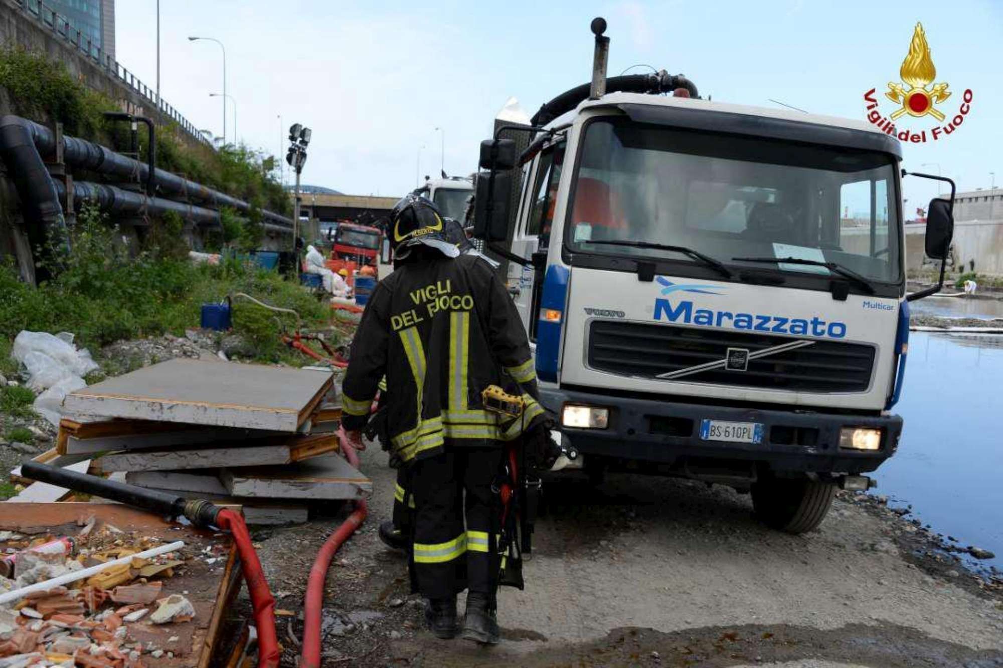 Genova, sversamento di greggio nel rio Fegino: vdf al lavoro