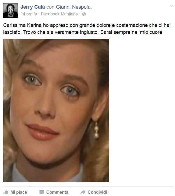 Karina Huff, il ricordo dei colleghi da Christian De Sica a Jerry Calà