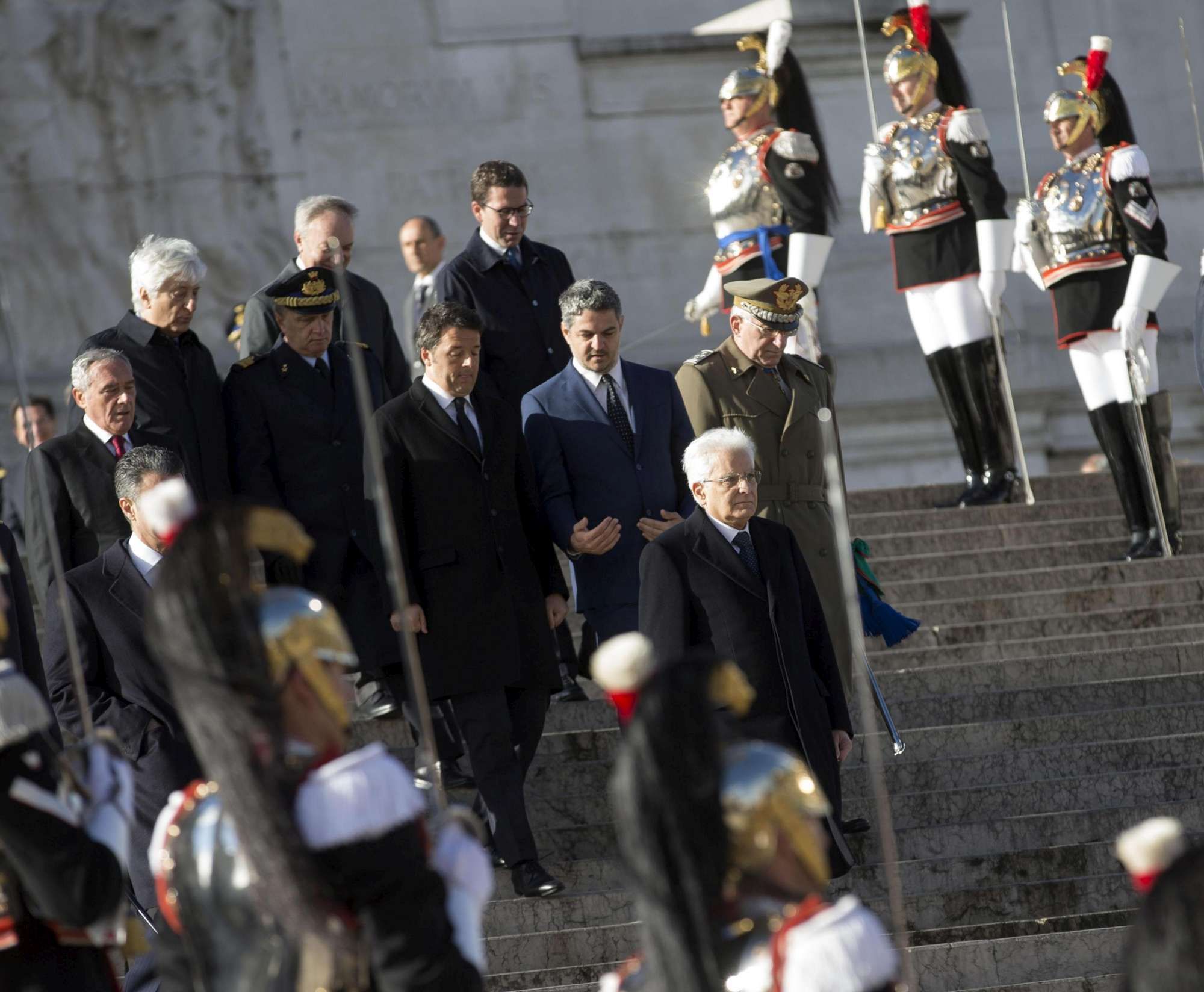 © ansa|Nella foto: Sergio Mattarella all'Altare della Patria con Matteo Renzi