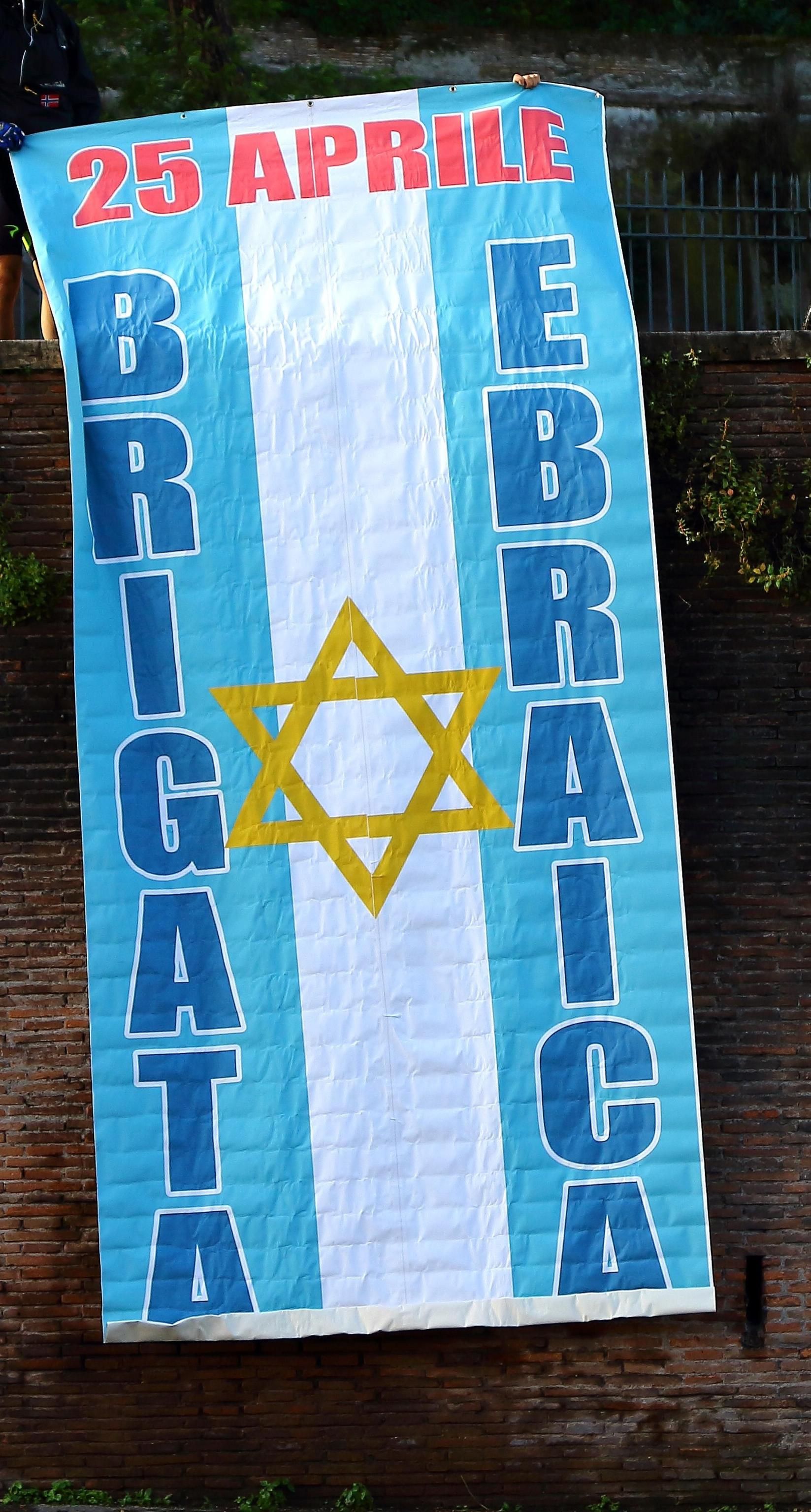 © ansa|Una mega bandiera della Brigata Ebraica esposta al Colosseo in occasione della festa del 25 aprile