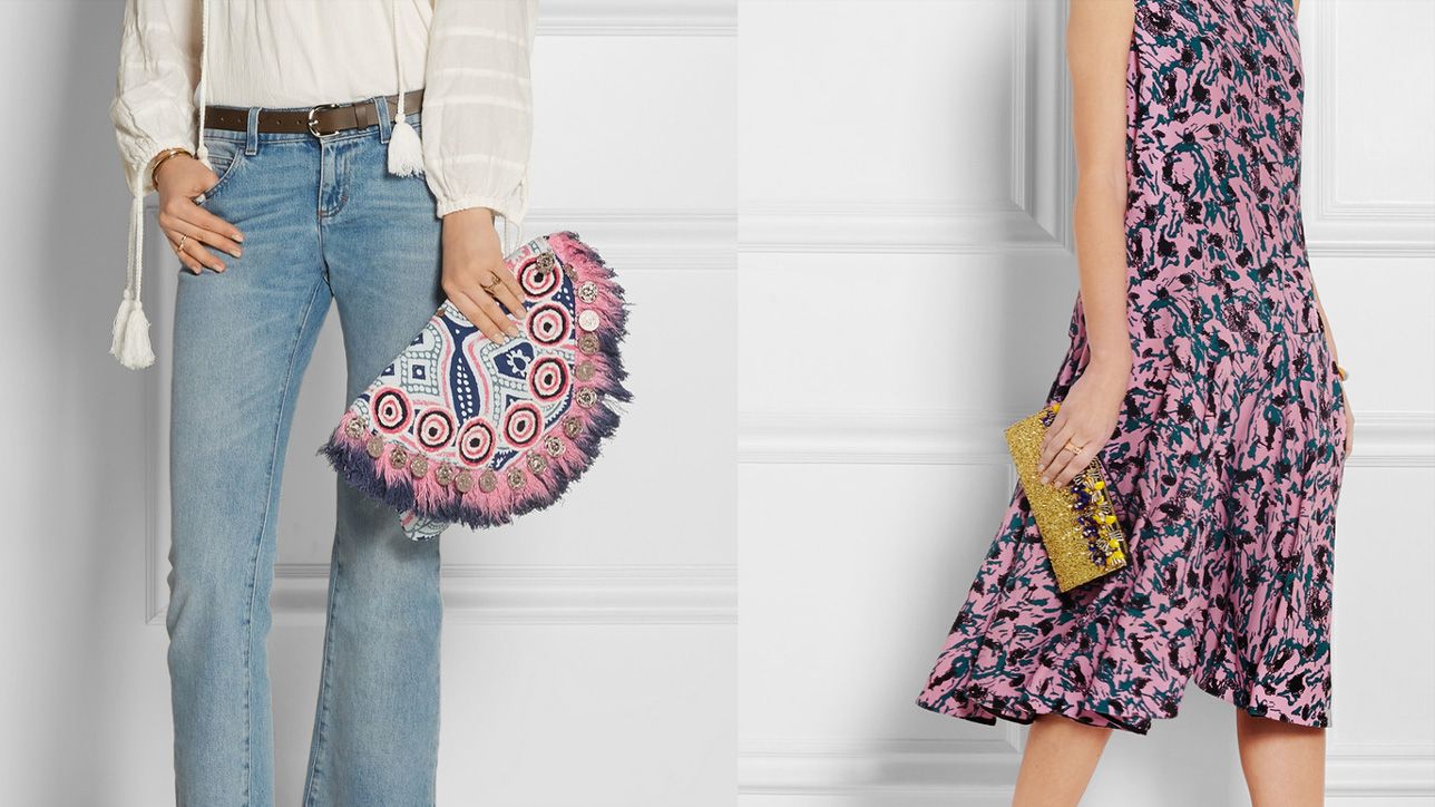 © web|Clutch Jean Panel Luau con decorazione, Edie Parker