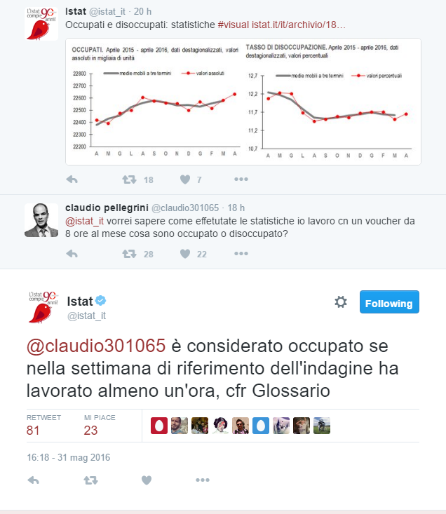 "Cinguettii" su dati Istat e occupati: si conta anche chi lavora un'ora con il voucher