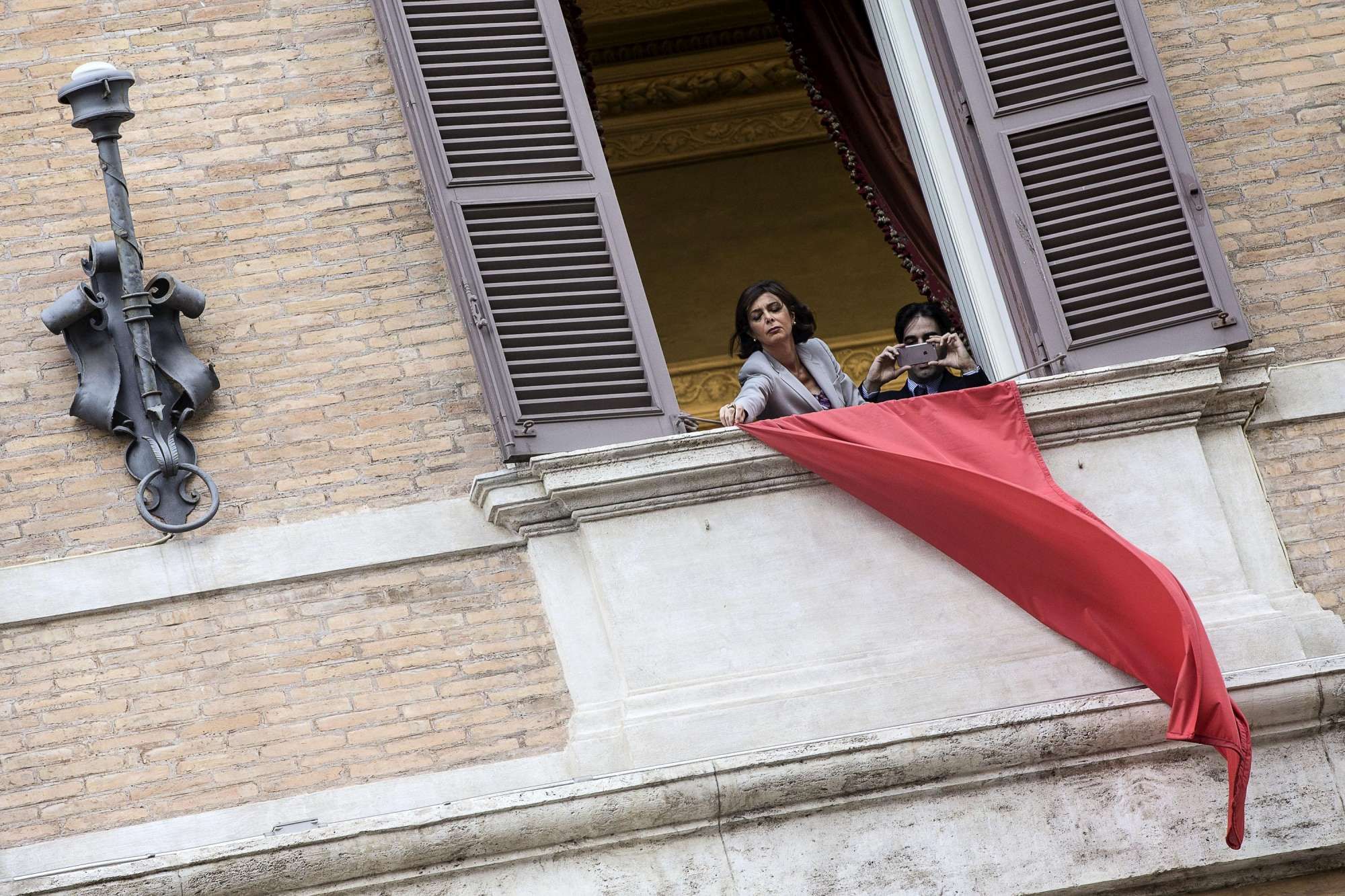 Femminicidio, Laura Boldrini espone drappo rosso contro la violenza sulle donne