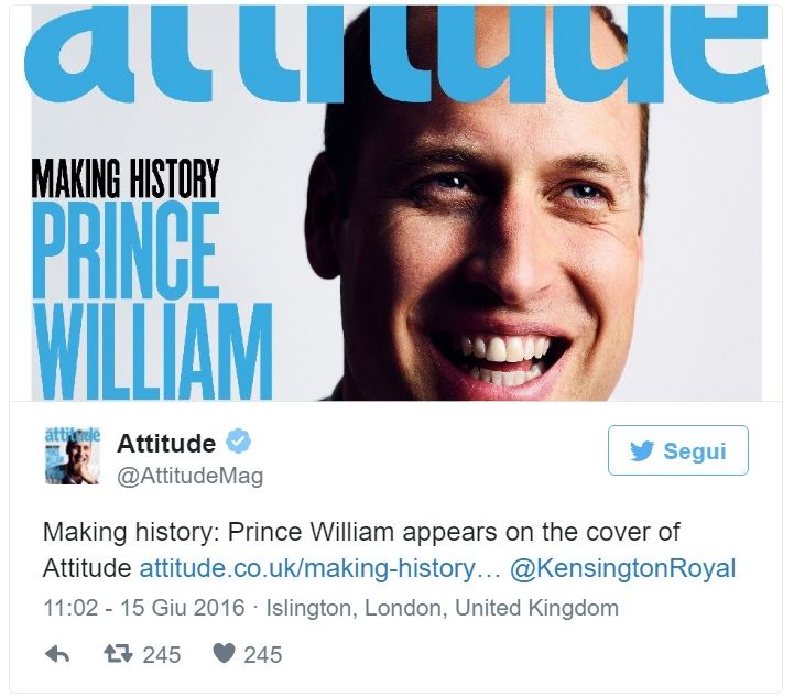 "No all'omofobia", il principe William sulla copertina di una rivista gay