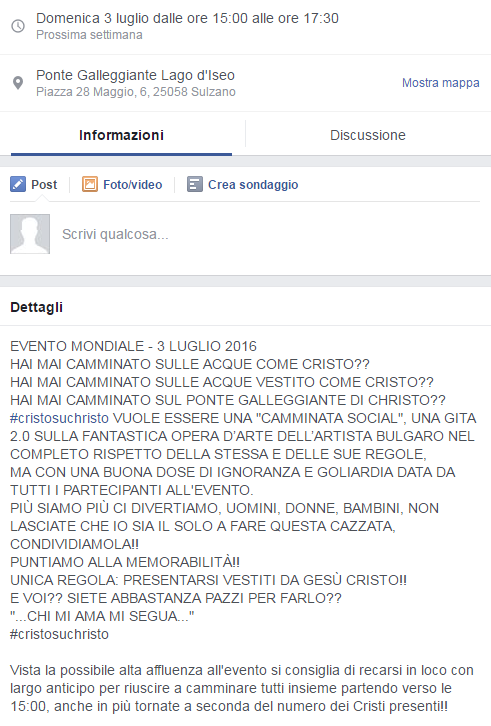 "Cristo su Christo": l'evento per percorrere la passerella sul Lago d'Iseo con... la tunica da Messia