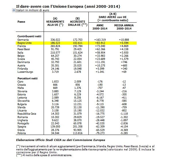il regno unito ha versato a Bruxelles 5,5 mld l'anno