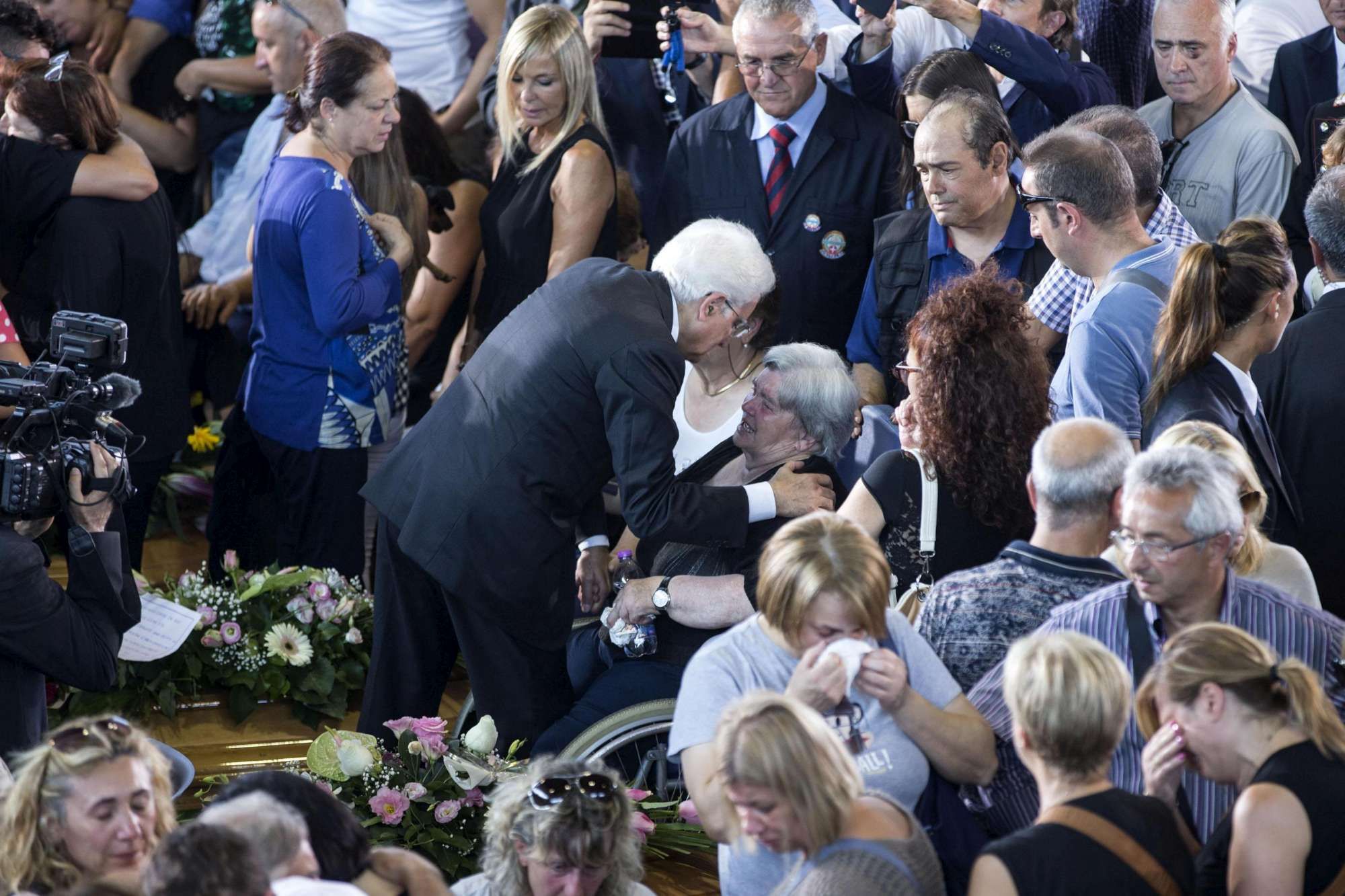 Mattarella abbraccia i parenti delle vittime del terremoto