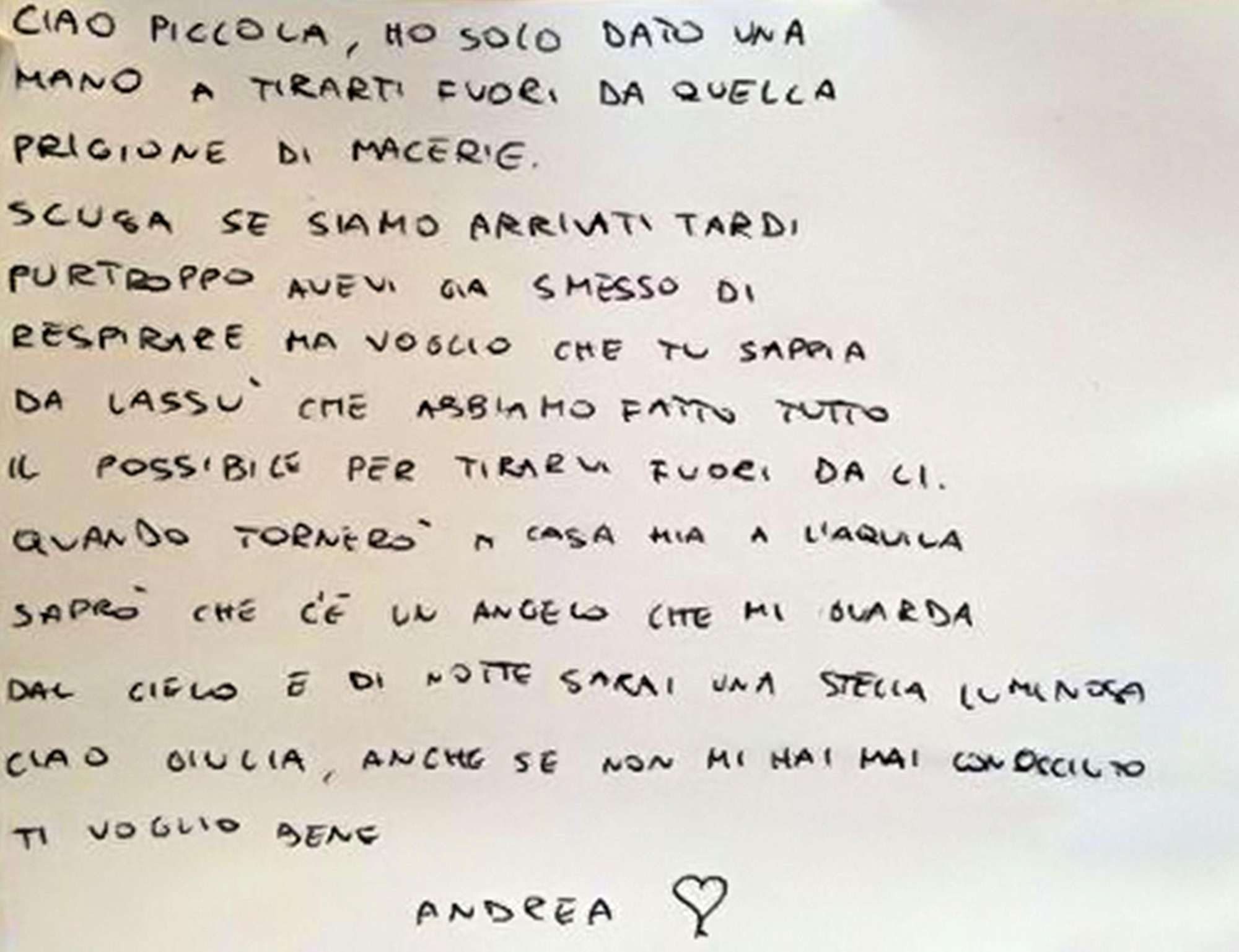 La lettera del soccorritore alla piccola Giulia: "Scusaci"