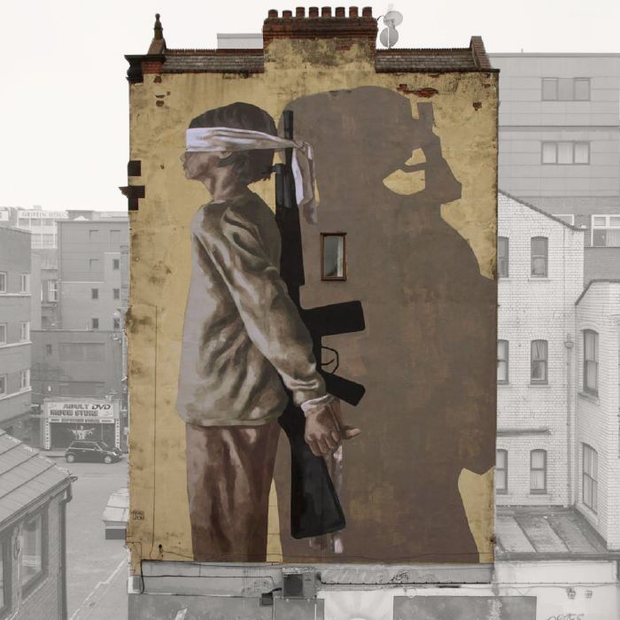 © ufficio-stampa|FINTAN MAGEE (AUSTRALIA ) | Il lavoro di Fintan Magee è incentrato su suggestioni legate a soggetti favolistici. I suoi ritratti per lo più personaggi sono come sospesi tra il sogno e la realtà. Dopo aver iniziato la sua carriera d’artista come writer per le strade di Brisbane, Magee si avvicina sempre più ai dipinti murali, con uno stile iconico che lo ha consacrato internazionalmente. Le sue opere di grandissime dimensioni, mescolano motivi surreali e figurativi e, interagendo con l’ambiente circostante, tendono a fondersi in esso.