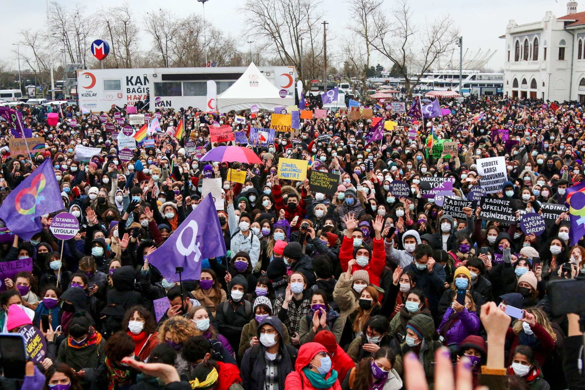 Dopo essere stato il primo Paese a firmarla 10 anni fa, la Turchia si è ritirata dalla storica Convenzione di Istanbul contro la violenza sulle donne. A seguito della notizia, centinaia di donne si sono radunate proprio Istanbul per protestare contro la decisione, gridando slogan pro-Lgbt e chiedendo le dimissioni di Erdogan. La Convenzione del Consiglio d'Europa sancisce che gli uomini e le donne hanno uguali diritti e obbliga le autorità statali a prendere provvedimenti per prevenire la violenza di genere, proteggere le vittime e perseguire i responsabili. Dal partito di Erdogan era partita la richiesta di una revisione dell'accordo, sostenendo che non fosse coerente con i valori conservatori della Turchia poiché "incoraggia" il divorzio e "mina" l'unità familiare. Quel testo promuoverebbe l'omosessualità attraverso l'uso di termini come orientamento sessuale e identita' di genere.