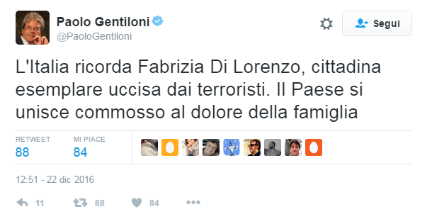 E' morta Fabrizia Di Lorenzo: il cordoglio politico sui social