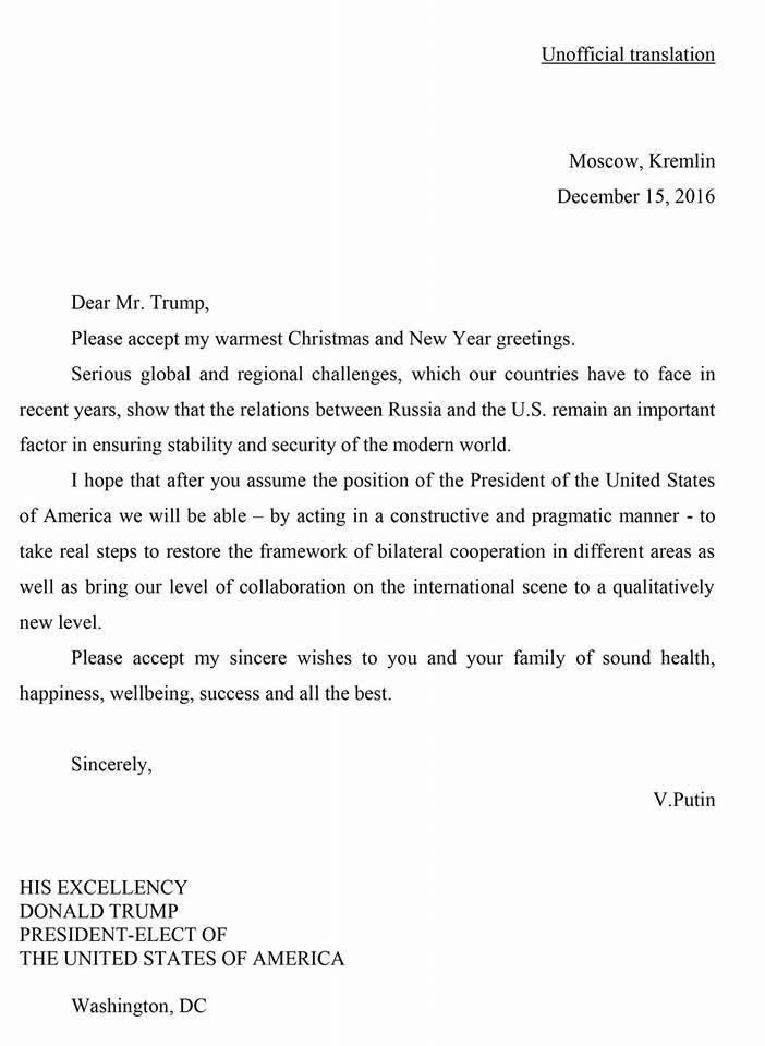Putin scrive a Trump per Natale: "Collaboriamo"