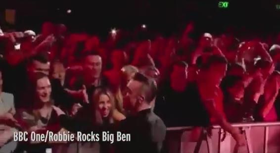 Robbie Williams si disinfetta le mani dopo aver toccato i fan