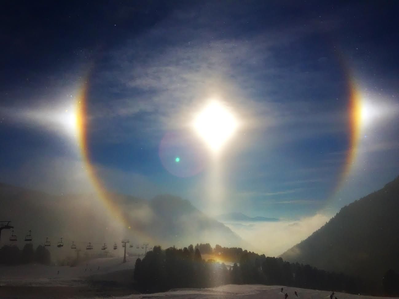 Trentino, spunta un arcobaleno circolare intorno al sole