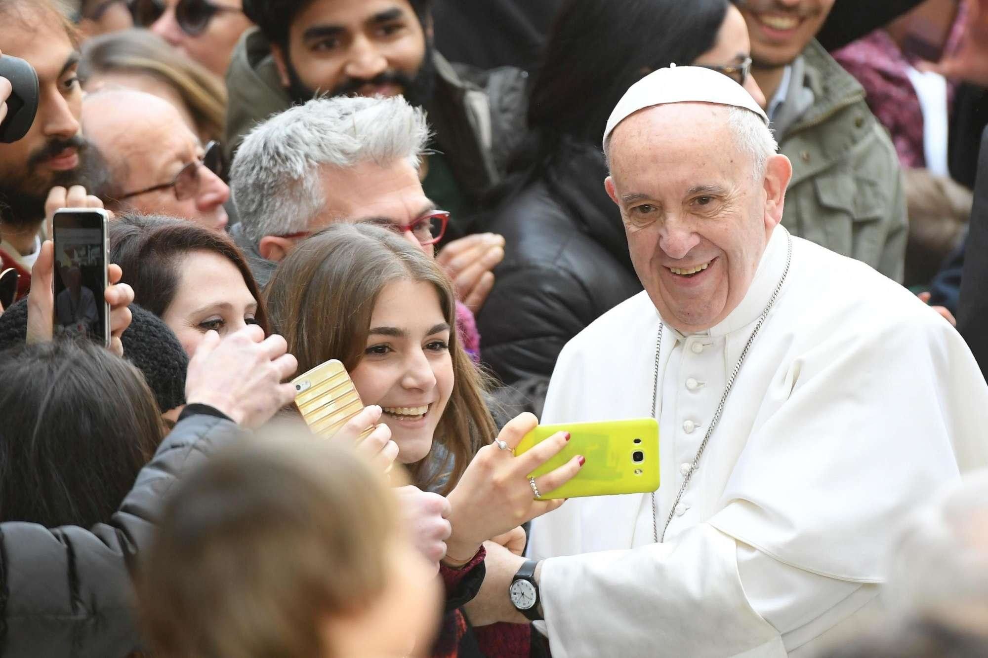Papa Francesco all'Università di Roma Tre, bagno di folla e selfie