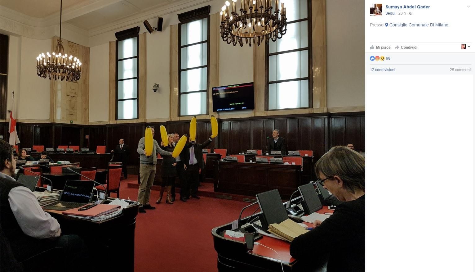Milano, banane gonfiabili in consiglio comunale contro le palme del Duomo