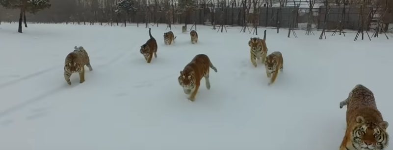 Cina, tigri siberiane catturano un drone