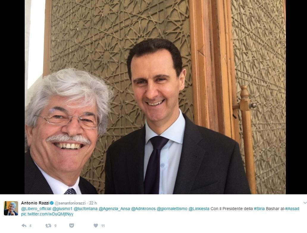 Siria, Razzi scatta un selfie con Assad e parte la polemica