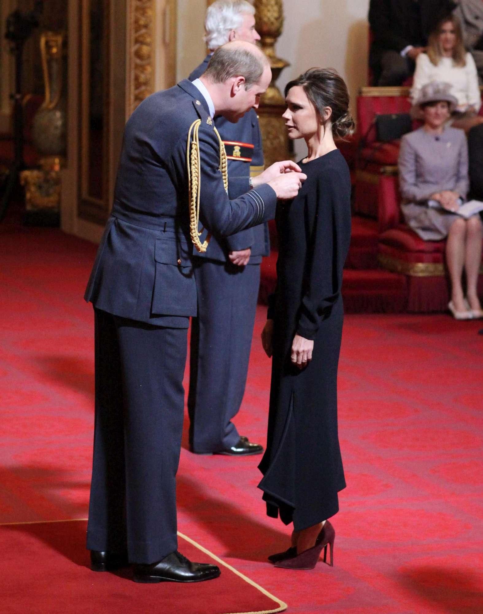 Victoria Beckham a Buckingham Palace per ricevere l'Obe