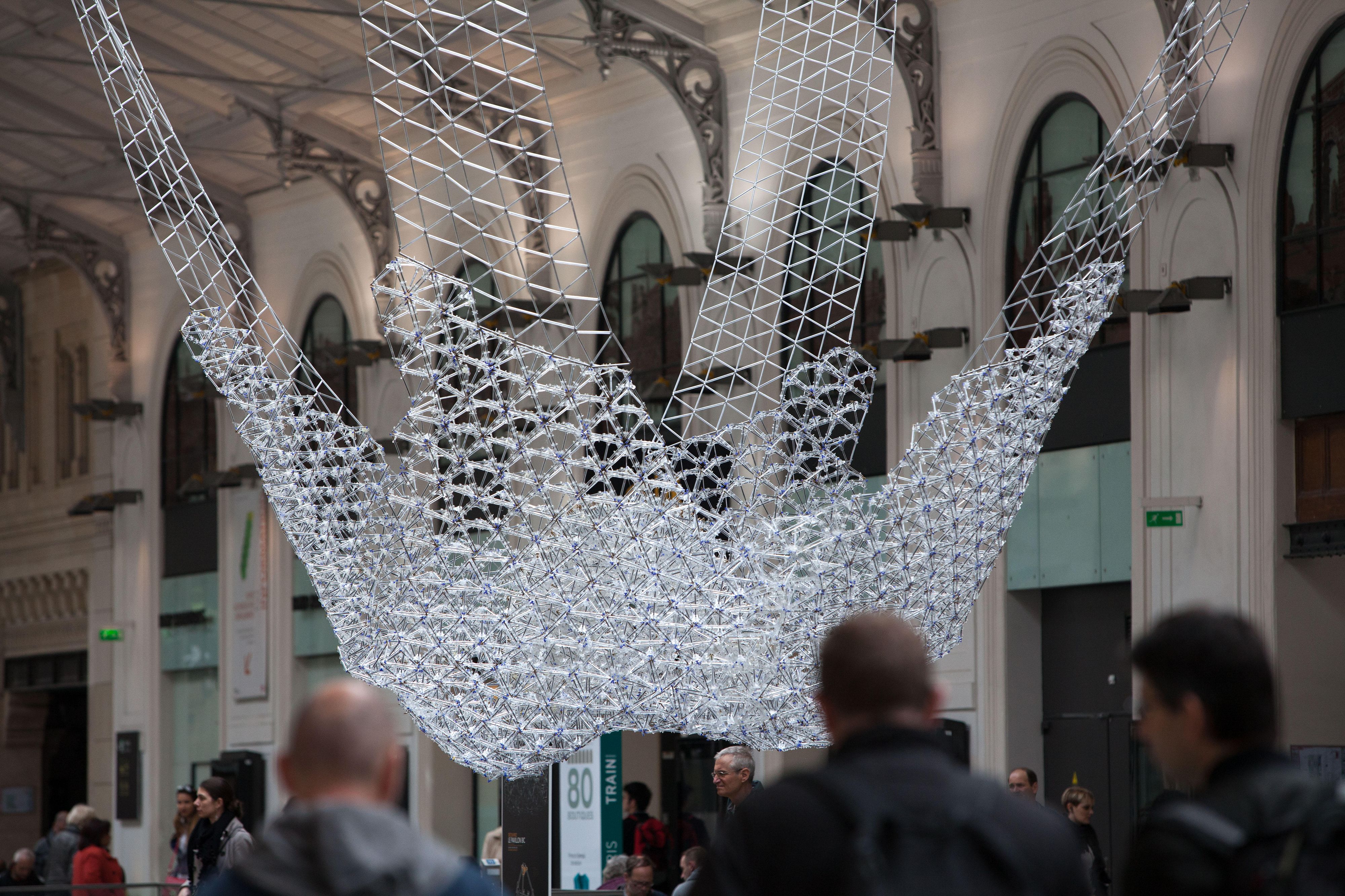 Francia, ecco il lampadario futuristico: è composto da 12.000 penne Bic