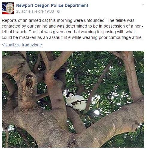 "Polizia, c'è un gatto armato di fucile su un albero"