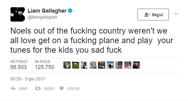 Liam Gallagher guerra social contro il fratello Noel: "Prendi un fottuto aereo e vieni a cantare a Manchester!"