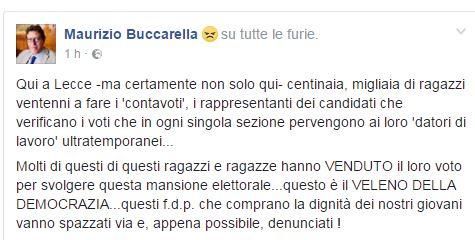 Comunali, la rabbia del senatore M5s Buccarella su Fb: "Figli di p..., hanno comprato voti"