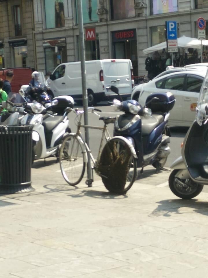 Milano, diecimila api invadono la via dello shopping e "si accasano" su una bicicletta