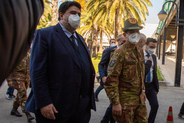 Covid, il Commissario Figliuolo in visita all'hub vaccini di Cagliari