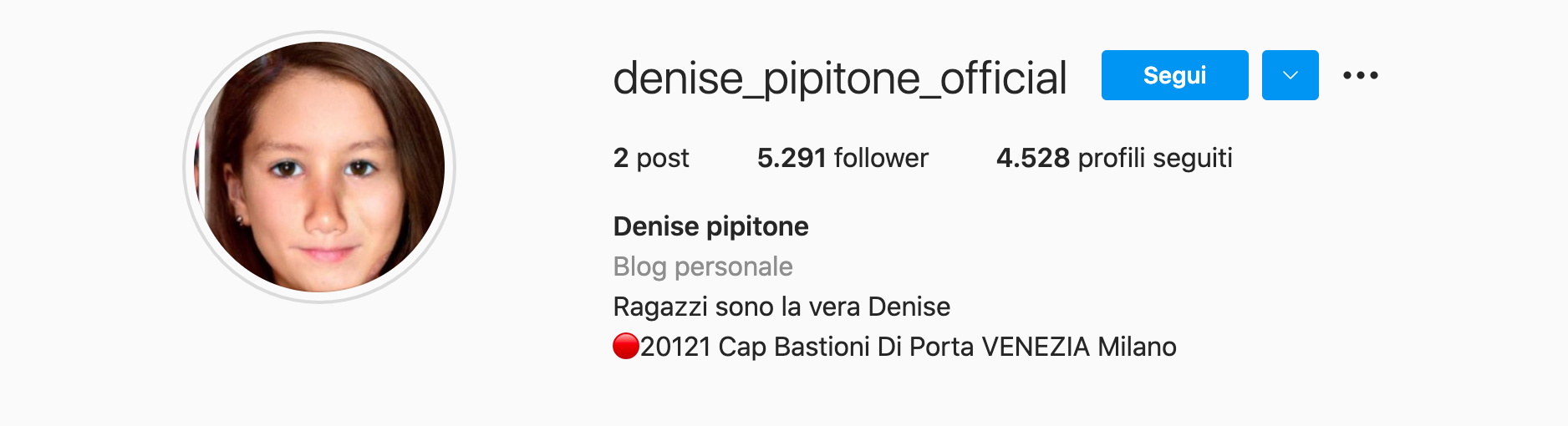 Non si placa lo sciacallaggio social intorno al caso Denise Pipitone, la bimba di Mazara del Vallo scomparsa nel settembre del 2004. Su Instagram è apparso il profilo falso "Denise Pipitone Official", seguito al momento da più di 5mila persone, nella cui descrizione si legge: "Ragazzi sono la vera Denise". Non solo. La persona che gestisce la pagina aggiunge dettagli, nei post come nelle stories. "Ragazzi questa non sono io. Sono solo delle fake news, io sono italiana, lei è solo un'attrice russa che fa tutto per hype e per fare spettacolo, diffido dalle imitazioni", si legge, ad esempio, in merito a Olesya Rostova. E' necessario ricordare che sostituirsi a una persona assente e appropriarsi della sua identità è un reato.