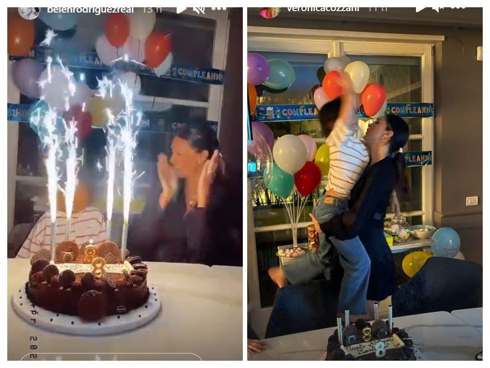 Per il figlio di Belen Rodriguez e Stefano De Martino una torta speciale con la famiglia e gli amichetti. Santiago compie 8 anni e festeggia in casa a Milano circondato dai parenti più stretti e da qualche bimbo. Per lui addobbi, palloncini, una torta al cioccolato e soprattutto tutta l’attenzione e l’amore di mamma Belen. La showgirl seduta accanto al figlio ha mostrato tutta la sua emozione. In attesa della secondogenita Luna Marie non trattiene la commozione e l’orgoglio per il suo piccolo ometto che diventa grande. Alla festa anche il compagno Antonino Spinalbese, i nonni Veronica Cozzani e Gustavo Rodriguez, e la zia Cecilia impegnata a fare foto e video…