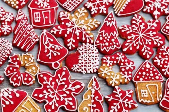 © ufficio-stampa|Biscottini di pasta frolla, addolciti da una glassa rossa e decorati con fili di glassa bianca.
