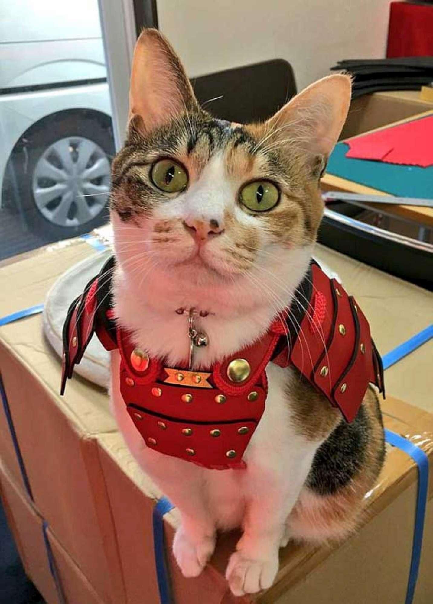 Lo spirito guerriero di cani e gatti nell'armatura dei samurai