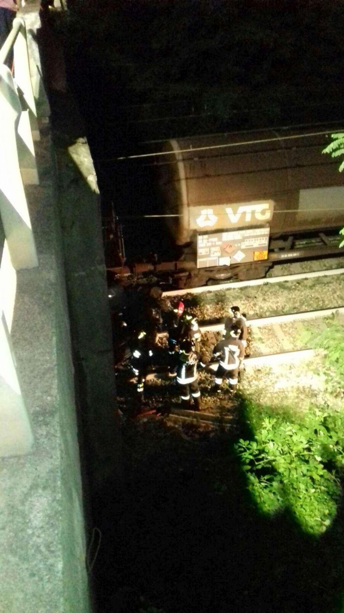 Como, auto sfonda il guard rail e finisce sui binari