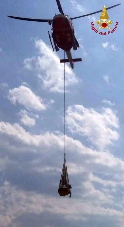 Ascoli Piceno, mucca fugge per il terremoto e cade in un dirupo: spettacolare recupero dal cielo