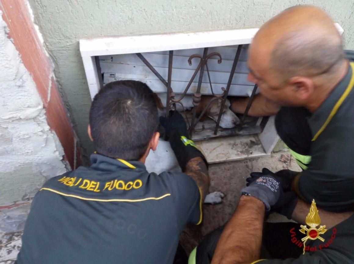 Cagliari, per tutta la notte incastrato in una ringhiera: cane salvato dai vigili del fuoco