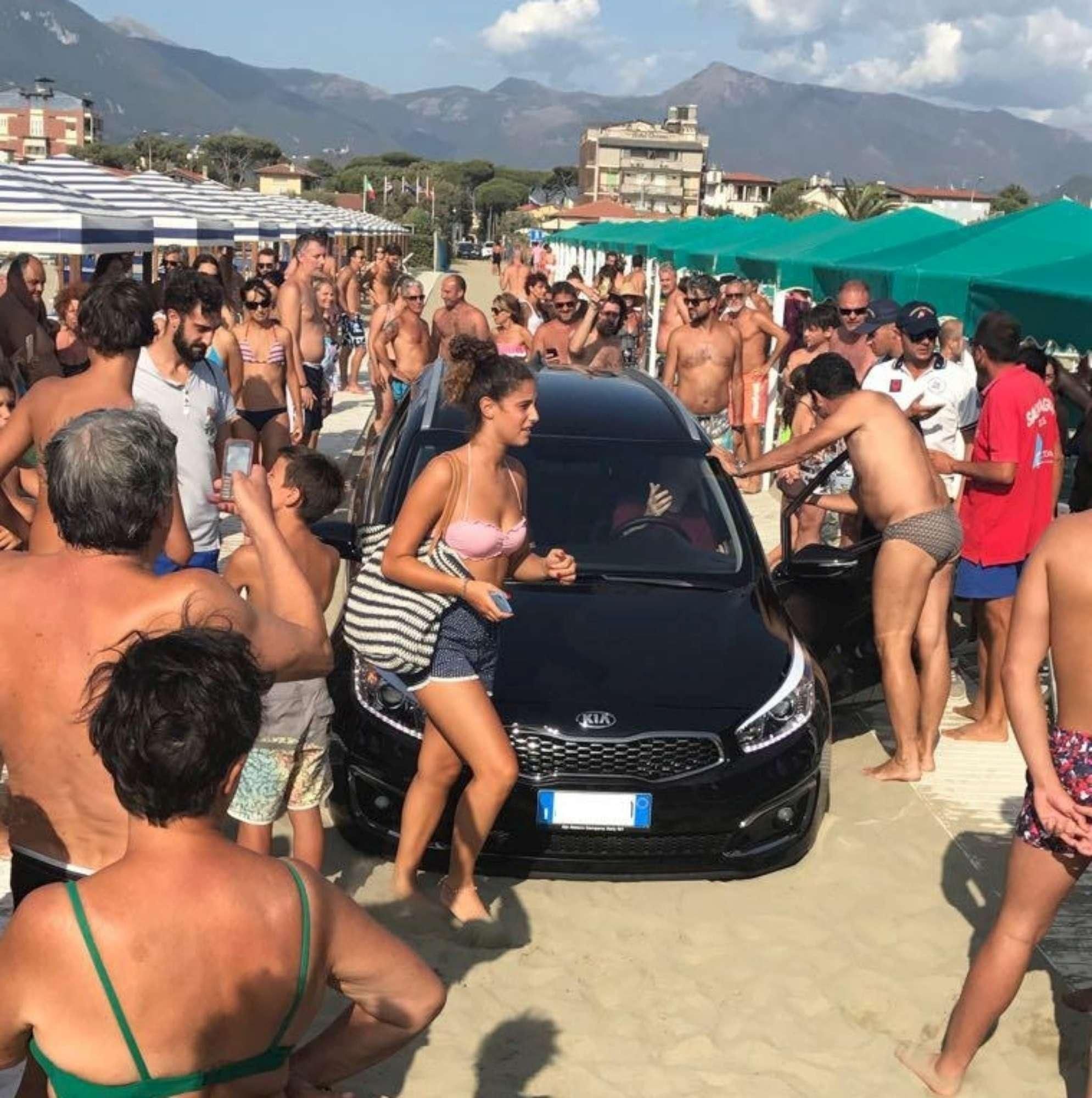Versilia, con la macchina in spiaggia: autista rischia il linciaggio