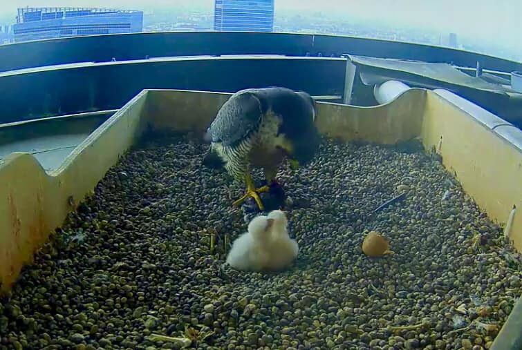 Anche quest'anno le uova nel nido all'ultimo piano del Pirellone di Milano si sono schiuse "in diretta". I due falchi del palazzo della Regione Lombardia, diventati ormai delle mascotte, Giò e Giulia, infatti, sono diventati di nuovo genitori. L'attesa è stata più lunga del previsto, perché il lieto evento era in programma per Pasqua, ma il freddo degli ultimi giorni ha ritardato la schiusa di quasi una settimana. Ed ora eccoli a occhio di webcam i falchetti appena nati, nel loro nido in cima al grattacielo, mentre vengono nutriti da mamma Giulia. Un terzo uovo è rimasto intatto. La favola di Giò e Giulia, dunque, continua, con centinaia di internauti che seguono la loro giornata sul sito a loro dedicato e che ora vedranno crescere e librarsi in volo anche gli ultimi nati del 2021