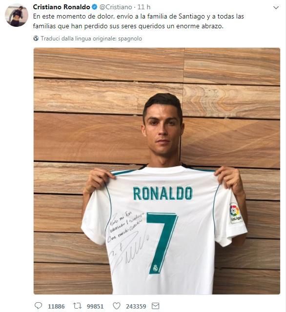 Messico, Cristiano Ronaldo dona la sua numero 7 autografata al bambino morto sotto il crollo della scuola