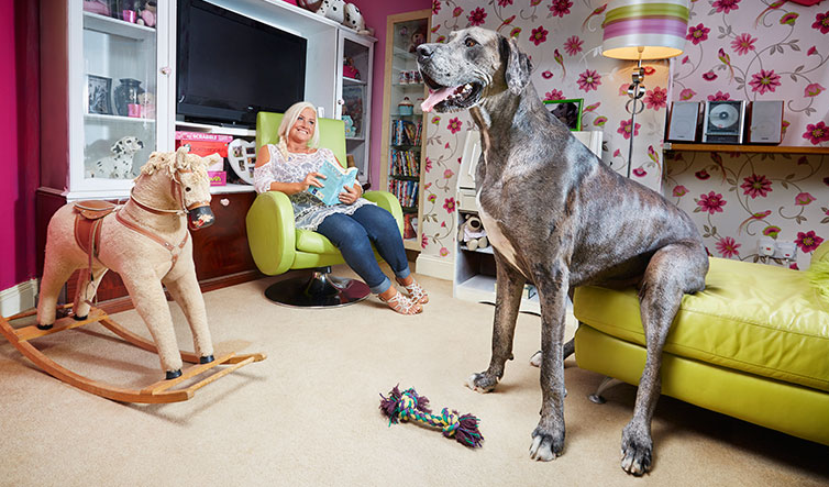 © tgcom24|Freddy è il cane più alto del mondo: misura 1,035 metri. Per ironia della sorte quando Claire l'ha adottato era il più piccolo della cucciolata. Nutrirlo costa circa 4mila sterline l'anno, ma quando era cucciolo Freddy mangiava davvero pochissimo "Provavo di tutto - ha detto Claire - credo di averlo viziato un bel po'"
