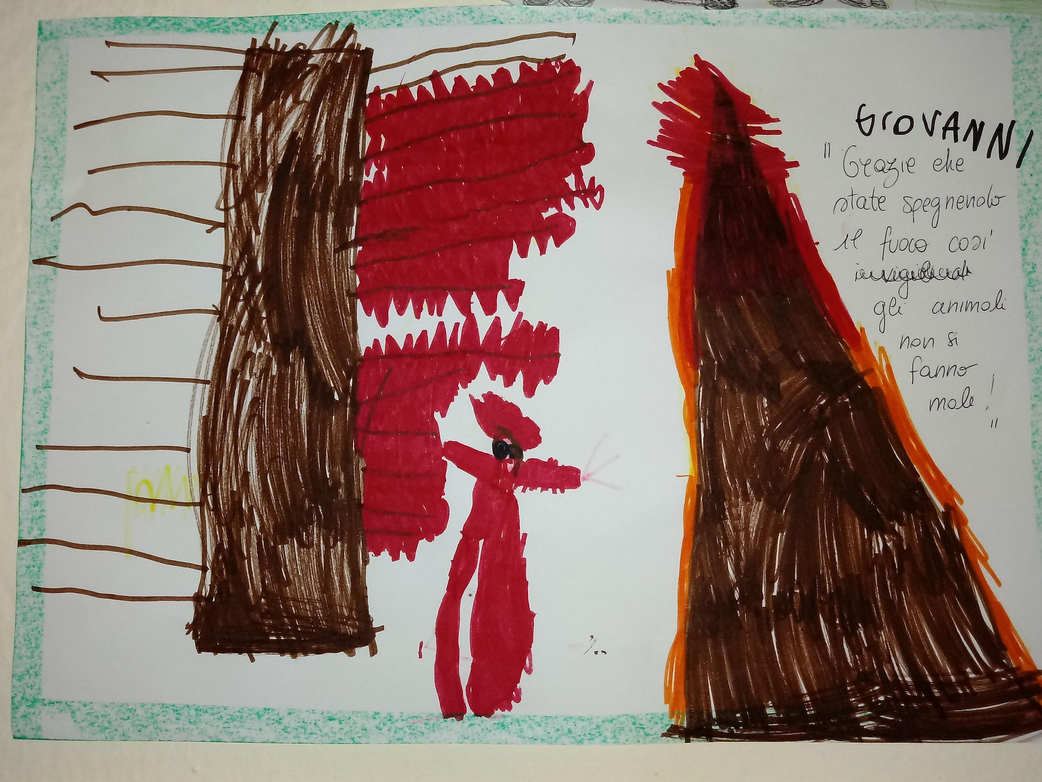 Varese, i bambini disegnano l'incendio del Campo dei Fiori per ringraziare i pompieri