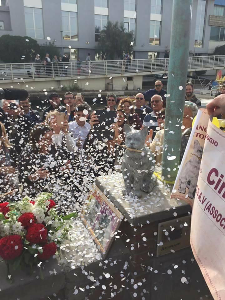 Viareggio: inaugurata la statua del gatto Ettore, la mascotte dei pescatori
