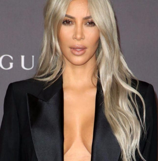 Kim Kardashian, giacca aperta e seno a vista