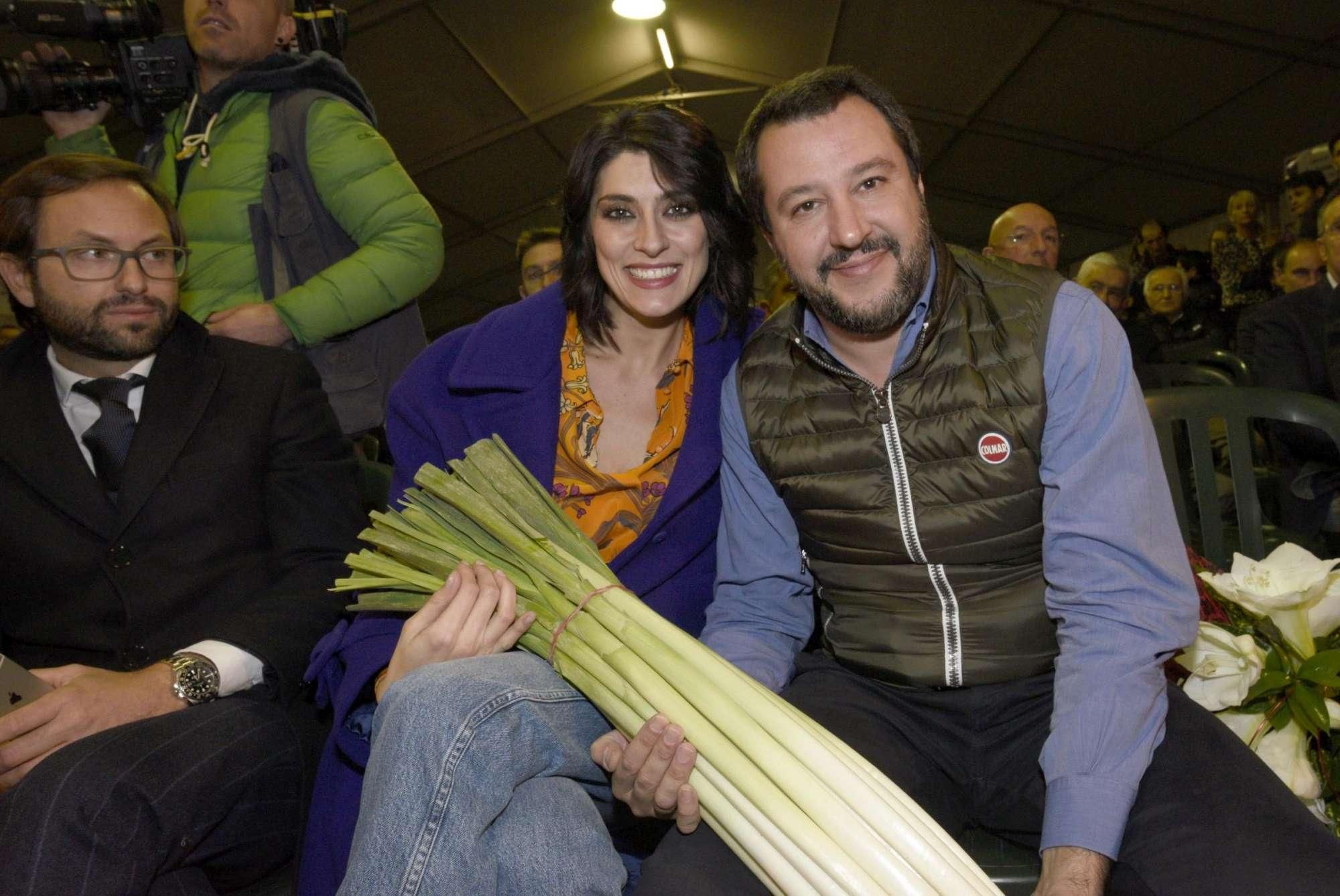 Matteo Salvini ed Elisa Isoardi, baci intensi alla Fiera del porro