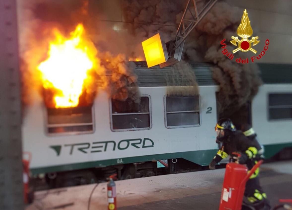 Milano, treno in fiamme alla Stazione Centrale: ecco le immagini