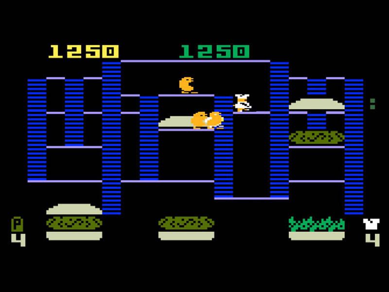 |Il mitico BurgerTime, la cosiddetta “killer application” di Intellivision, ovvero: non c’era una console Intellivision senza BurgerTime e non c’era un giocatore appassionato di Intellivision che si rispettasse senza BurgerTime. Il videogioco metteva il giocatore per la prima volta nei panni di “Peter Pepper”, che doveva far scivolare gli strati degli hamburger sui vassoi camminandoci sopra ed evitando i nemici che infestavano la sua cucina. (Foto dal Web)