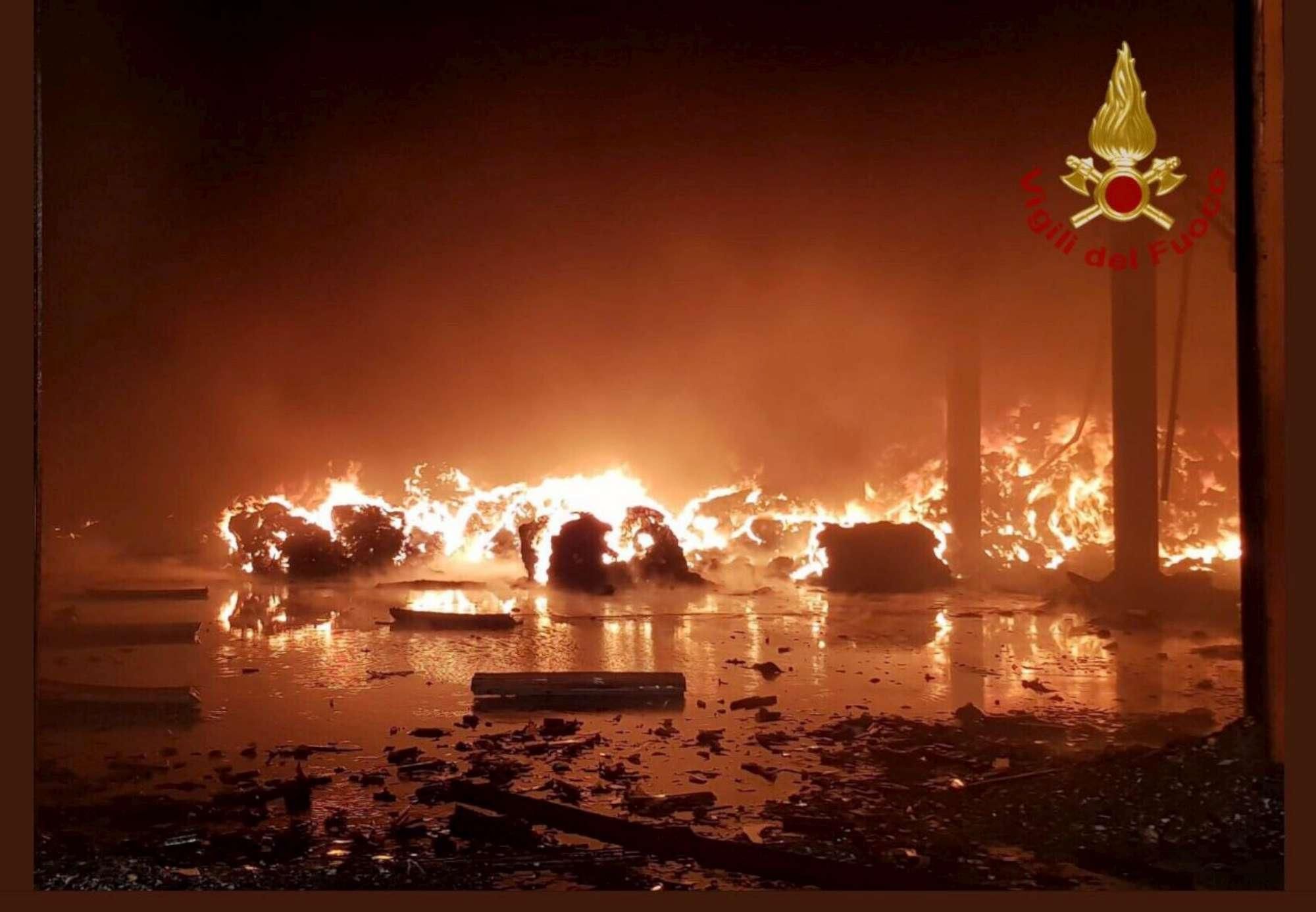 Pavia, incendio in un capannone di materie plastiche